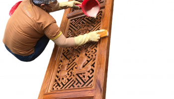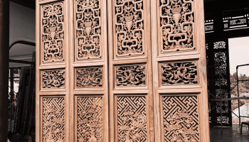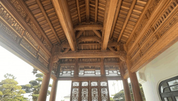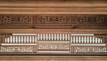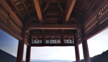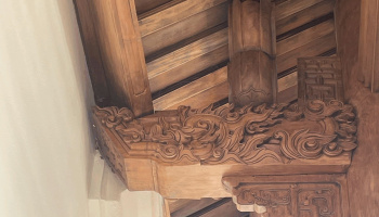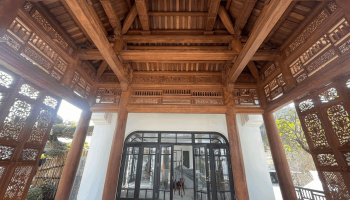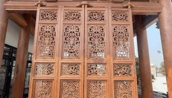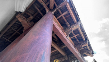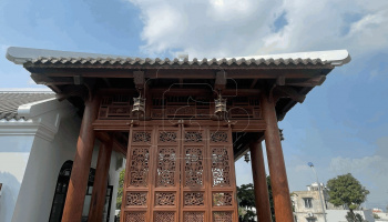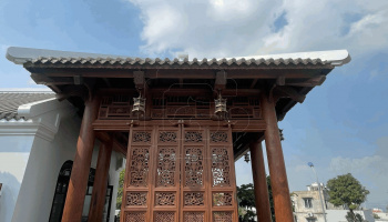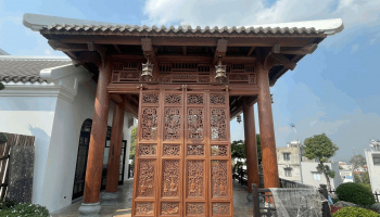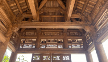 Bước vào bên trong, chúng ta cảm nhận được sự tĩnh lặng và yên bình của không gian này. Các Vì gỗ được chạm khắc tỉ mỉ, tinh xảo với những họa tiết, hoa văn truyền thống trong những bộ sưu tập biểu tượng hồn Việt của Gỗ Giang.