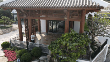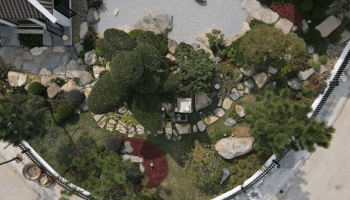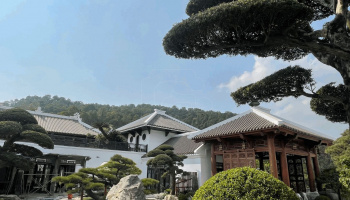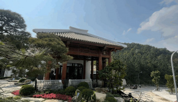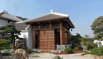 Tọa lạc bên khu vườn Nhật đẳng cấp càng làm tăng thêm vẻ đẹp thanh nhã của công trình. Với không gian mở mang đến ánh sáng và gió biển tự nhiên cho không gian bên trong. Điểm nhấn công trình với 8 bức vách bình phòng 2 bên, khi mở người thưởng trà có thể ngắm nhìn thiên nhiên hùng vĩ và thư thái tâm hồn. Cũng có thể đóng lại để tìm cho mình một không gian yên tĩnh cùng view triệu đô.
