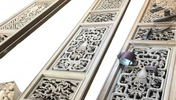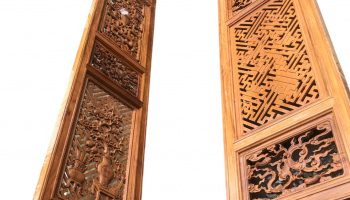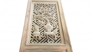 Hệ tam sơn và bình phong được đục chạm 2 mặt tinh xảo kết hợp với nghệ thuật chạm lộng, kênh bong. Đó là sự kết hợp hoàn hảo giữa kiến trúc và tay nghề người thợ từ làng nghệ Mộc cổ truyền nghìn năm Chàng Sơn.