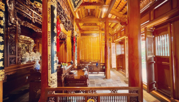 Phòng thờ được “sơn son thiếp vàng” uy nghiêm, trang trọng với những đường nét chạm khắc tinh xảo