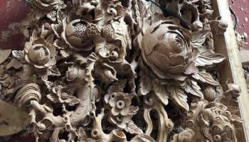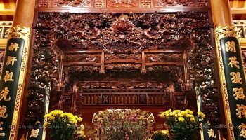 Đường nét chạm khắc tinh xảo, hoàn toàn thủ công trong phòng thờ