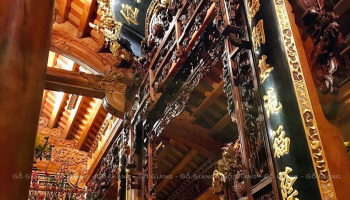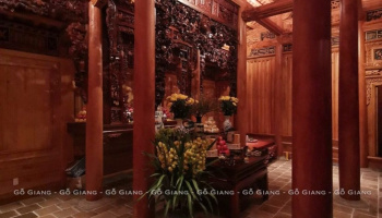 Phòng thờ là nơi tôn nghiêm nhất trong không gian nhà ở, chính vì thế mọi đồ thờ – không gian phòng đều được Gỗ Giang dụng tâm nhất, mang đến vẻ đẹp trang nghiêm, sang trọng và quyền quý. Bàn thờ và đồ thờ được dát vàng ta 9999 tỉ mỉ, nổi bật với hoành phi câu đối. Không gian phòng thờ trang nghiêm, mang đến cảm giác gần gũi ấm cúng những cũng linh thiêng trang trọng.