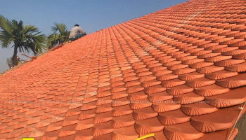 Phần mái ngói được lợp với kĩ thuật chống dột tân tiến nhất hiện nay bởi những chuyên gia hàng đầu Việt Nam, đảm bảo độ bền chắc cao nhất. Mái ngói được lợp thẳng hàng, tạo thành đường lối đẹp mắt, ngói lợp được tuyển chọn cẩn trọng để đạt độ mịn màng.