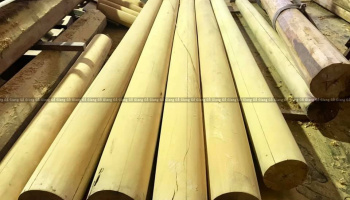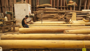 Những thân gỗ mít sau quá trình tuyển chọn kĩ lưỡng được nghệ nhân chế tác, sẵn sàng cho quá trình xây dựng và lắp đặt nhà gỗ 3 gian