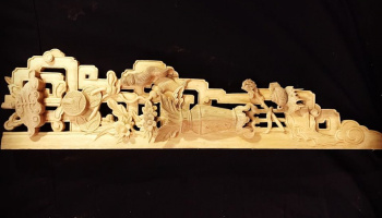 Đồ thờ được chạm khắc thủ công, sử dụng hình ảnh 5 dơi ngũ phúc. Trong tiếng Hán, “dơi” đồng âm với chữ “phúc”; dưới triều đại hoàng đế Mãn Châu, con dơi chỉ đứng sau hình ảnh rồng, chúng ta thường thấy hình ảnh dơi đỏ xuất hiện nhiều trên long bào. 5 con dơi tức là ngũ phúc, gồm có: Phú – Quý – Thọ – Khang – Ninh