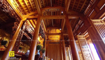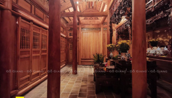 Công trình nhà gỗ 3 gian tại Vĩnh Phúc do Gỗ Giang thiết kế – xây dựng – hoàn thiện được xem là ngôi nhà sử dụng gỗ mít lớn và tinh xảo bậc nhất Việt Nam hiện nay. Công trình được đánh giá cao bởi những yếu tố có một không hai, từ tìm kiếm nguyên liệu cho đến chi tiết rất nhỏ và mới mẻ đối với kiến trúc truyền thống như giải pháp biện chiếu sáng hay từng đường nét chi tiết chạm khắc thủ công; không những kế thừa tinh hoa truyền thống mà còn đảm bảo tính tối ưu trong sinh hoạt cho gia chủ.