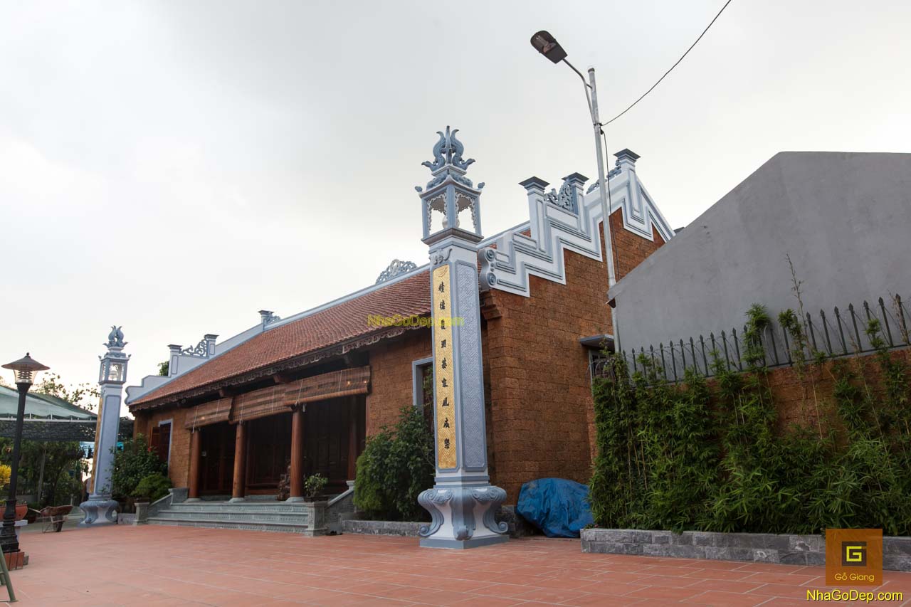 Nhà 5 Gian (nha nam gian) : bên ngoài ngôi nhà gỗ 5 gian, tường xây đá ong với giải pháp của Kts Nguyễn Giang khắc phục một số nhược điểm thường thấy khi xây là tường bị thấm và ẩm mốc. Ngôi nhà với giải pháp tường đá ong với giải pháp cách nhiệt tốt sẽ tạo cho ngôi nhà ấm về mùa đông và mát mẻ về mùa hè.