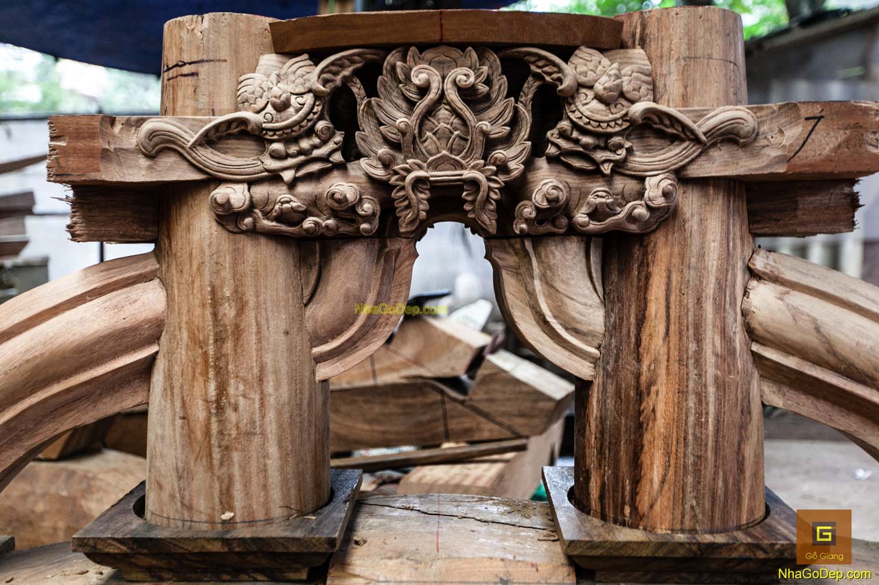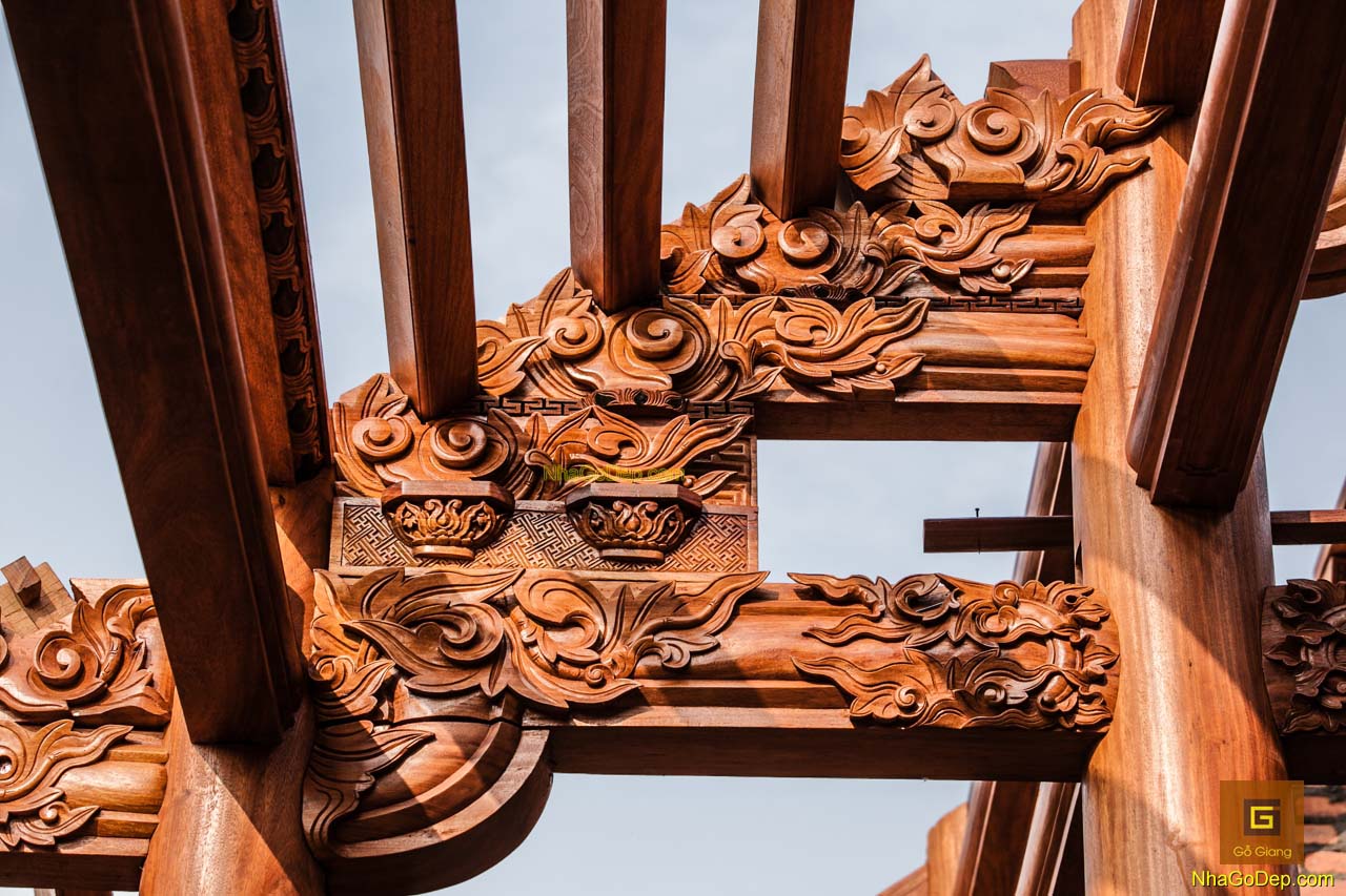 Nhà gỗ đẹp với họa tiết chạm khắc độc đáo do các công trình thực hiện bởi KTS Nguyễn Giang.