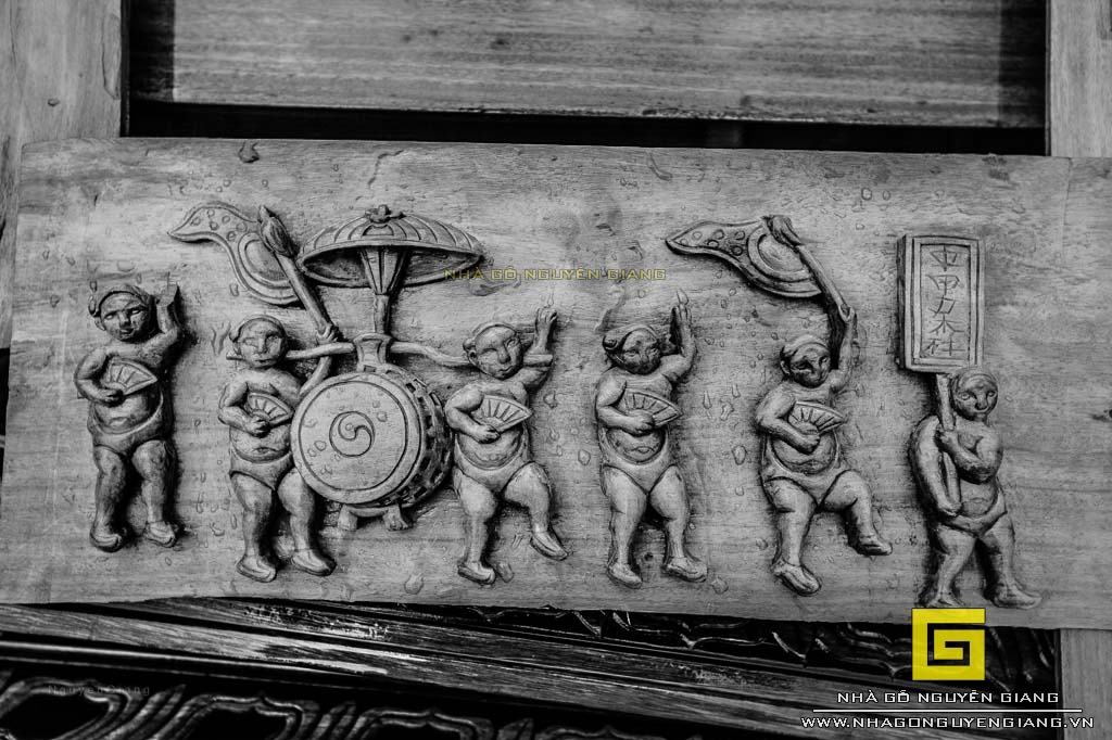 Hoa văn chạm trổ diễn tả cuộc sống dân dã, được chạm khắc bằng tay bởi nghệ nhân