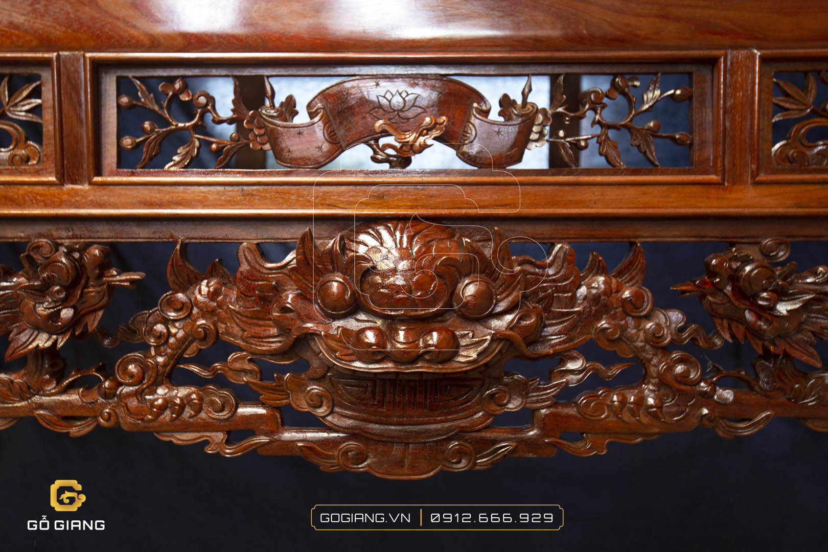 Chiêm ngưỡng chi tiết bộ án gian thờ làm từ gỗ gụ cho công trình nhà gỗ tại Bắc Ninh. Những chi tiết điêu khắc tuy nhỏ nhưng "có võ"