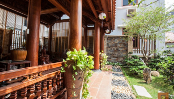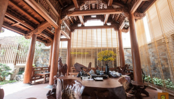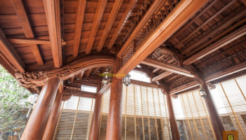 Nhà gỗ đẹp, các chạm khắc tinh xảo từ tinh hoa của kiến trúc cổ Việt nam được chắt lọc bởi KTS Nguyễn Giang và thổi hồn bởi bàn tay tài hoa của những nghệ nhân tại xưởng Gỗ Giang Làng nghề mộc mộc cổ truyền Chàng Sơn.