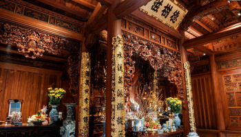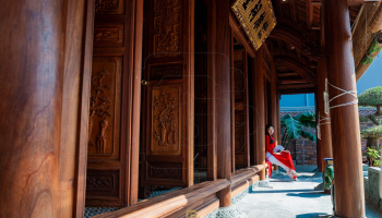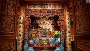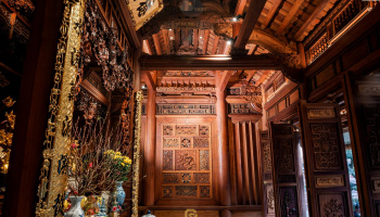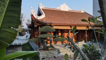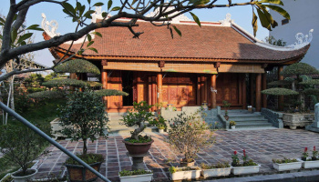 Gỗ Giang xin giới thiệu đến quý vị một công trình độc đáo - Ngôi nhà gỗ 3 gian 2 chái truyền thống. Với sự kết hợp tuyệt vời giữa kiến trúc truyền thống và cảnh quan sân vườn mộc mạc, ngôi nhà gỗ này là một lựa chọn tuyệt vời cho những ai đang tìm kiếm không gian tâm linh trang nghiêm và ấm cúng.