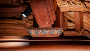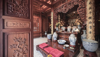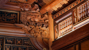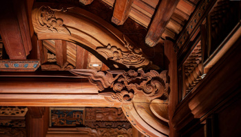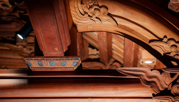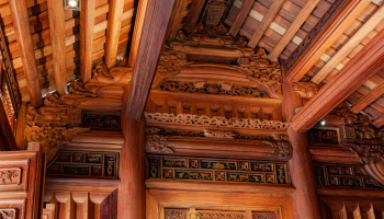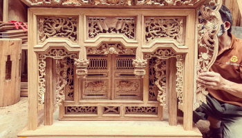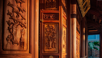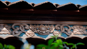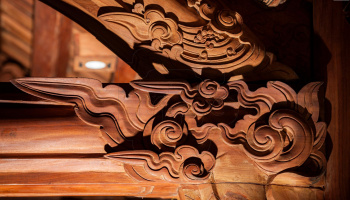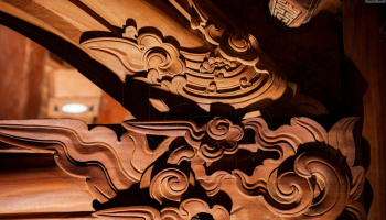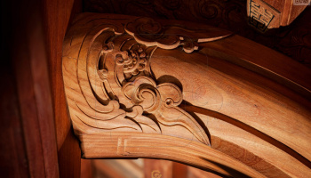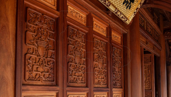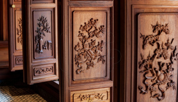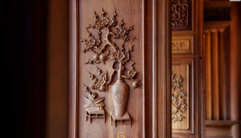 Hoa văn đục chạm trên các cấu kiện của ngôi nhà thể hiện sự kết tinh nhiều yếu tố quý giá của nghệ thuật mộc truyền thống. Các nghệ nhân đã khéo léo thể hiện tài năng và tinh tế của mình trên những cấu kiện gỗ qua những họa tiết phức tạp. Mỗi đường chạm khắc được điêu luyện một cách tỉ mỉ và gửi gắm bao tâm huyết, hòa quyện thành một tác phẩm nghệ thuật đẹp mắt, ươm mầm di sản và có giá trị bền vững theo thời gian.