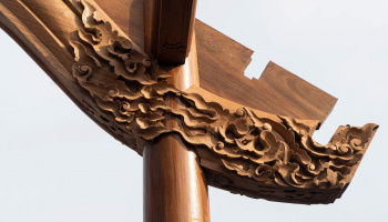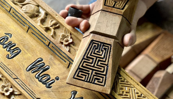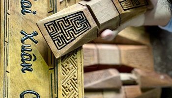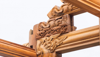 Hoa văn đục chạm trên các cấu kiện của ngôi nhà thể hiện sự kết tinh nhiều yếu tố quý giá của nghệ thuật mộc truyền thống.Mẫu hoa văn này nằm trong bộ sưu tập biểu tượng hồn Việt có bản quyền riêng của Gỗ Giang Mỗi đường chạm khắc được điêu luyện một cách tỉ mỉ và gửi gắm bao tâm huyết, hòa quyện thành một tác phẩm nghệ thuật đẹp mắt, ươm mầm di sản và có giá trị bền vững theo thời gian.
