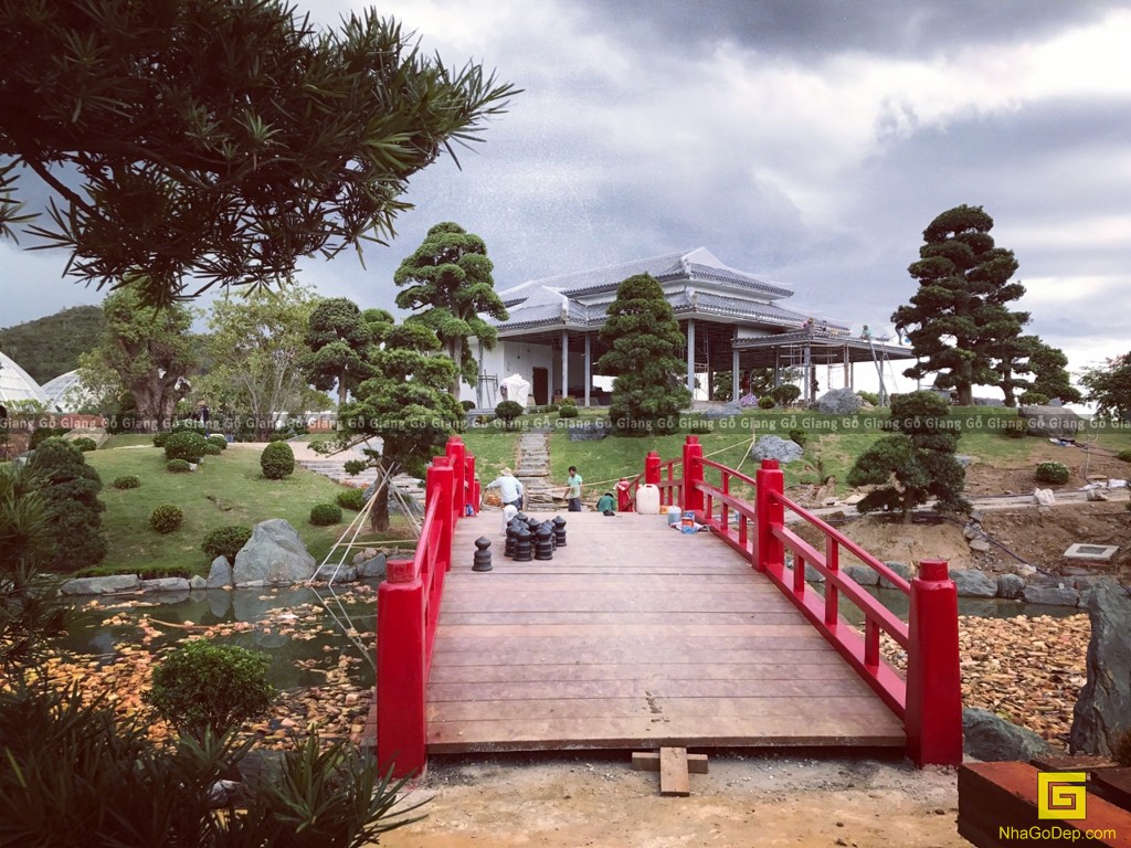 Kiến trúc gỗ Vườn Nhật bản Vinpearl Land Nha TrangHình ảnh cầu gỗ Nhật Bản khi đưa vào sử dụng. Ảnh nguồn từ internet.Hình ảnh công trình trong quá trình thi công:Kiến trúc gỗ Vườn Nhật bản Vinpearl Land Nha Trangcác cầu kiện được tính toán, lắp dựng thử tại xưởng Gỗ Giang