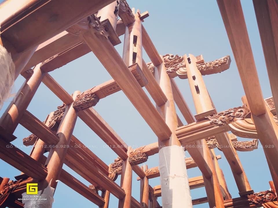 Các cấu kiện gỗ được dựng lên phần khung