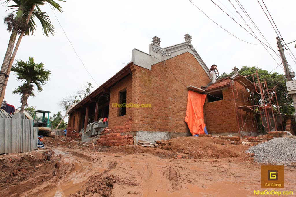Nhà gỗ kiểm tra lắp dựng trước tại xưởng, trước khi đến công trình lắp dựng. Gỗ làm nhà là Gỗ Lim được chọn lựa kỹ bởi Gỗ Giang.