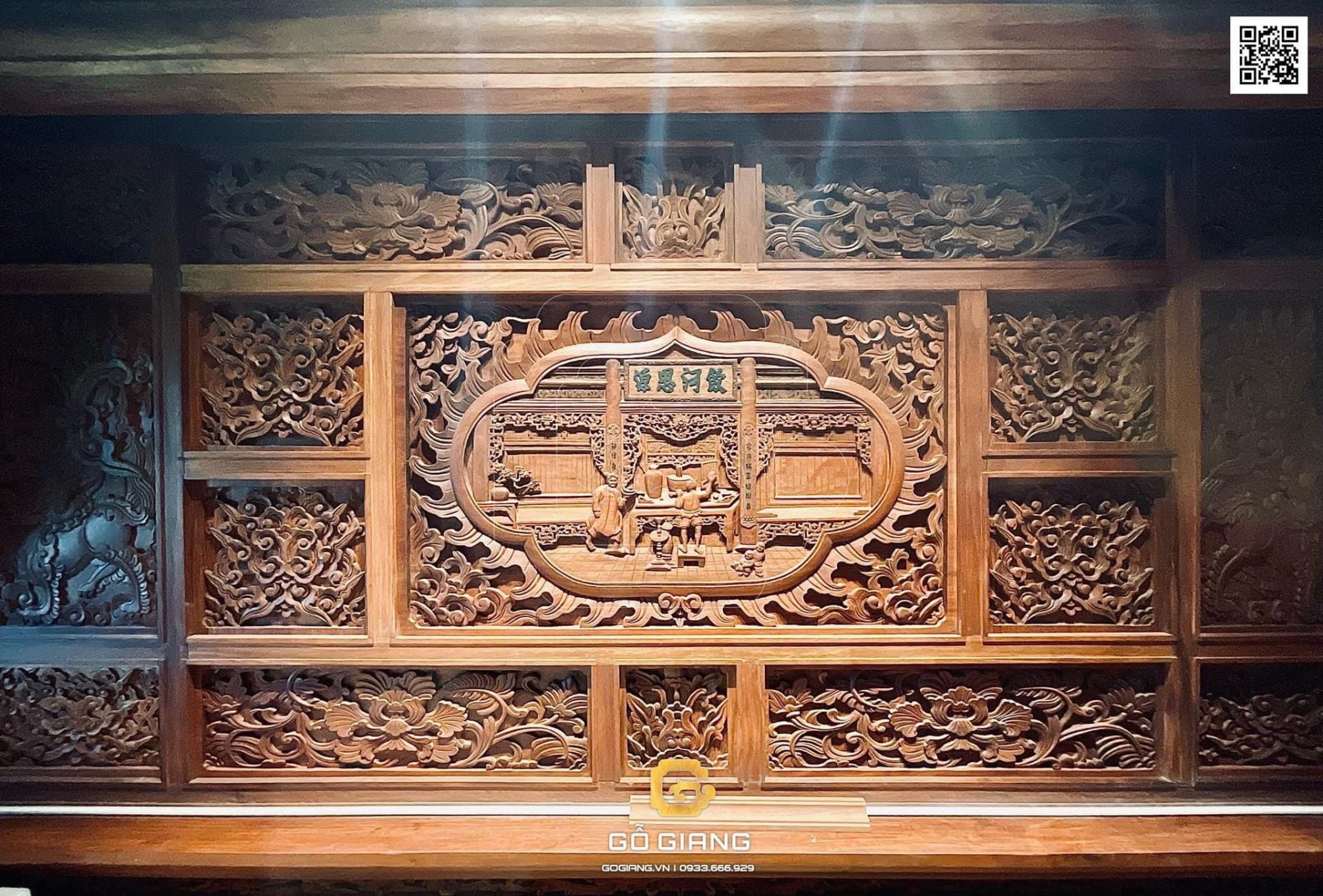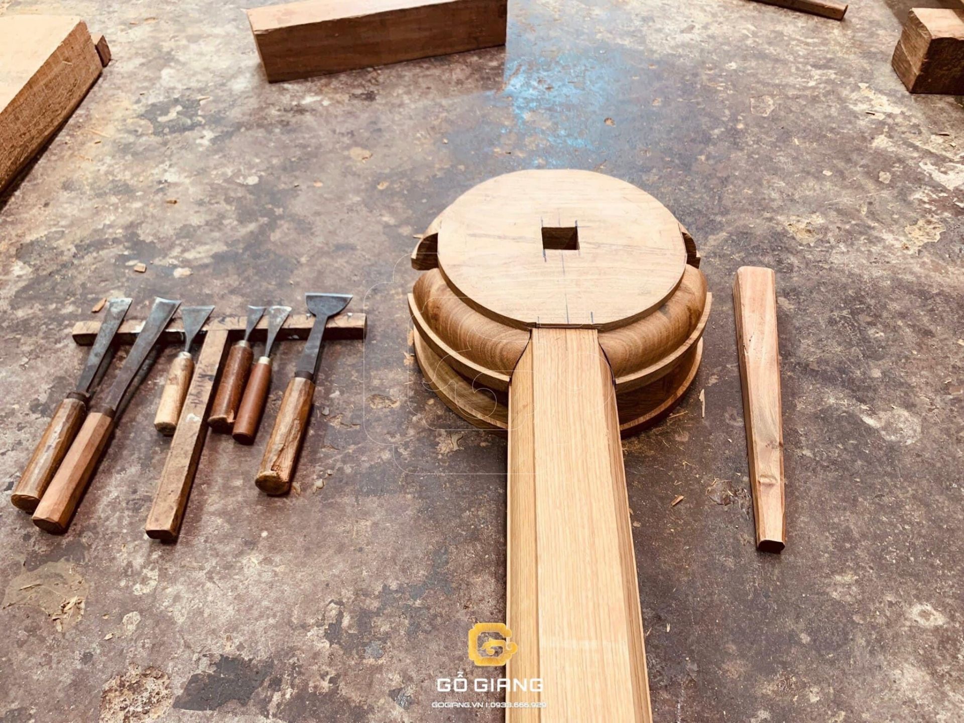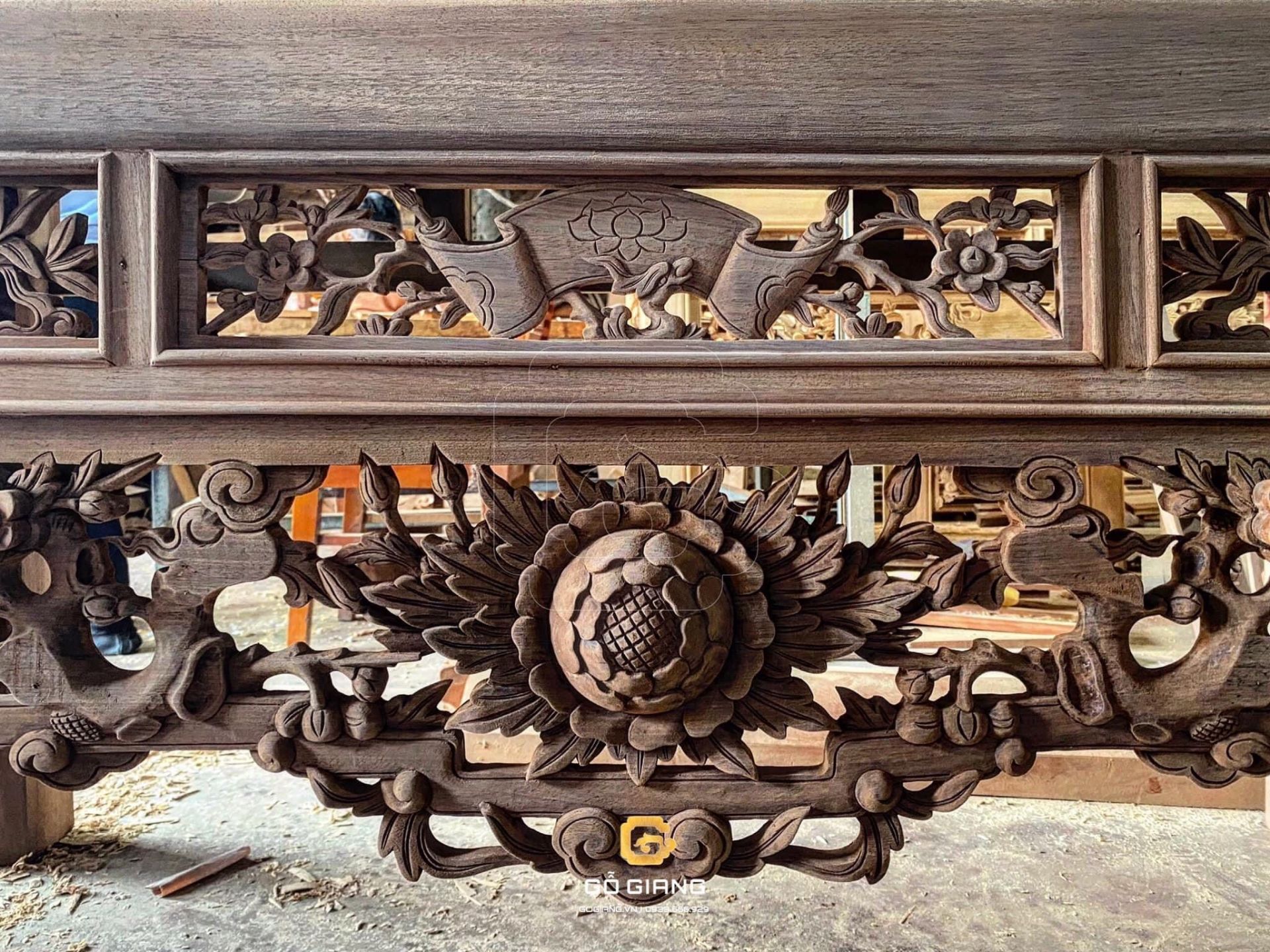 Ngoài việc thi công các cấu kiện khung phòng thờ, còn có những chi tiết chạm khắc được những người thợ làm thủ công