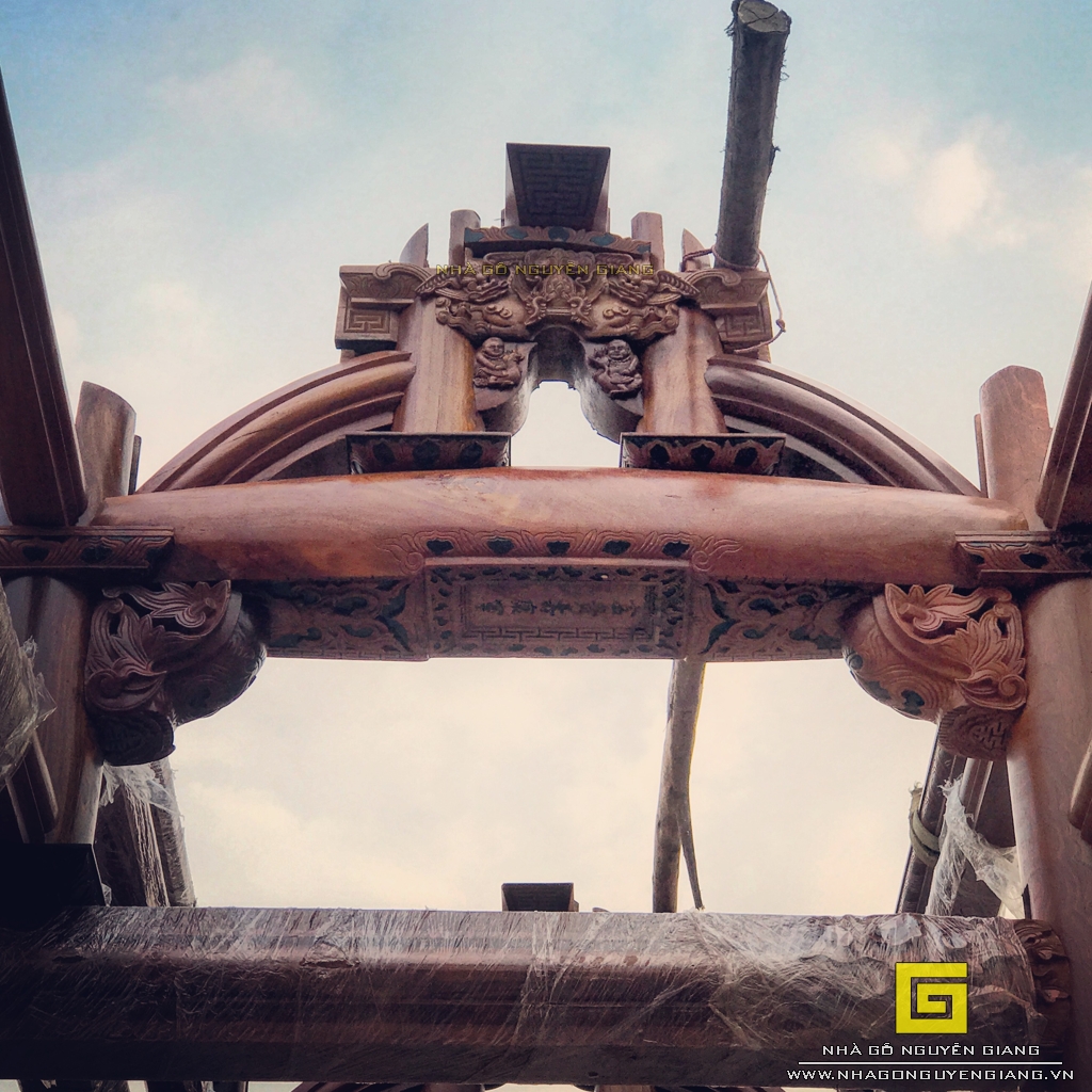 Kết cấu ngôi nhà với chạm khắc tinh xảo độc đáo, và duy nhất có ở công trình kiến trúc gỗ truyền thống do Kts Nguyễn Giang thực hiện:
