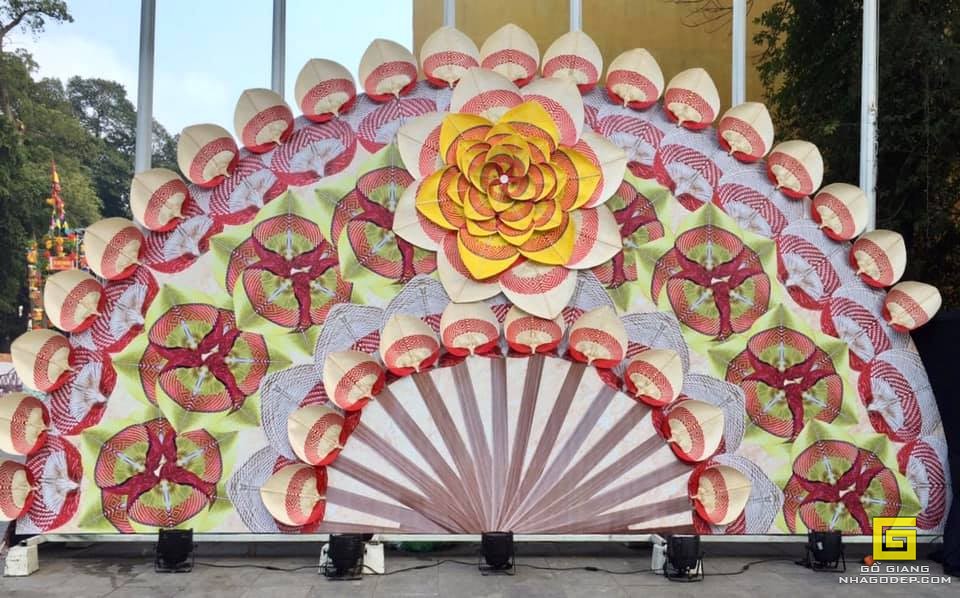 Gian Quạt Giấy Chàng Sơn được bài trí bắt mắt với những cánh quạt nhiều màu sắc