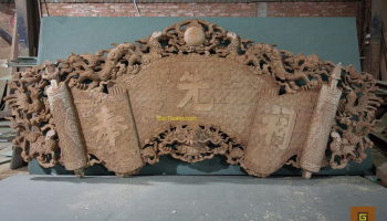 Các Hoa văn trên các cấu kiện được Gỗ Giang chạm khắc tinh tế, chú trọng sự đơn giản vừa đủ, nhấn nhá vào các điểm trọng tâm vd như: câu đầu, đầu kìm, con rường…)