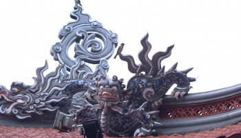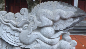 Rồng đá ở 2 bên của bậc thang được làm theo mẫu của thời nhà Lý, tất cả được chạm khắc thủ công, đường nét mềm mại, mộc mạc nhưng vẫn rất tinh tế.