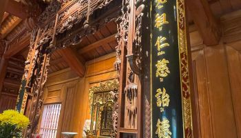 Khi tiến hành thiết kế khuôn viên này, Gỗ Giang đã lắng nghe và thấu hiểu được sự tâm huyết của gia chủ mong muốn một không gian tâm linh truyền thống kết hợp cùng tiện ích trong cuộc sống hiện đại ngày nay. Do vậy đội ngũ kiến trúc sư và lòng yêu nghề của những người thợ mộc đã đặt sự tâm huyết vào từng chi tiết của kiến trúc, gia công chế tác để tạo ra một khuôn viên dung hòa giữa truyền thống và tiện ích hiện đại.
