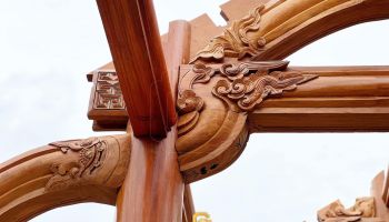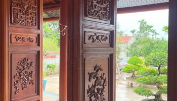Hoa văn đục chạm trên các cấu kiện của ngôi nhà thể hiện sự kết tinh nhiều yếu tố quý giá của nghệ thuật mộc truyền thống.Mẫu hoa văn này nằm trong bộ sưu tập biểu tượng hồn Việt có bản quyền riêng của Gỗ Giang Mỗi đường chạm khắc được điêu luyện một cách tỉ mỉ và gửi gắm bao tâm huyết, hòa quyện thành một tác phẩm nghệ thuật đẹp mắt, ươm mầm di sản và có giá trị bền vững theo thời gian.