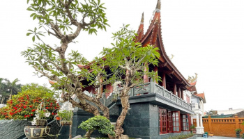 Phần mái là tám mái với kiến trúc cổ diêm đôc đáo, phần cổ diêm được tận dụng để lấy ánh sáng tự nhiên