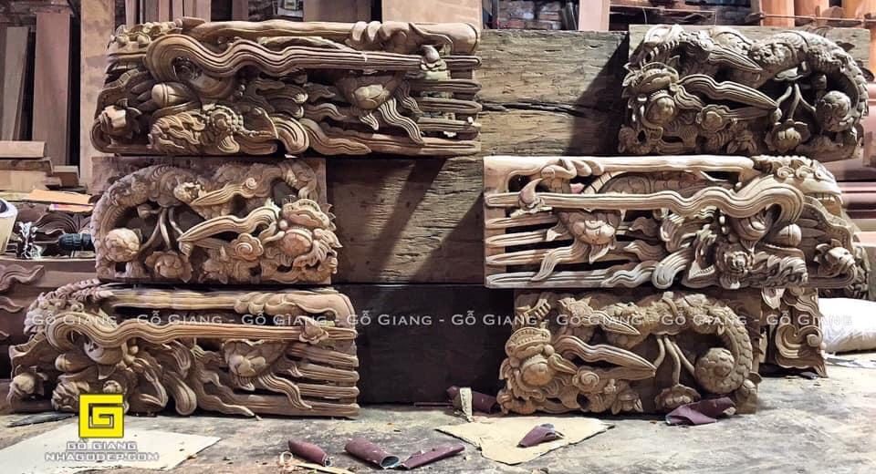Các mẫu đục chạm khắc trên các cấu kiện độc đáo, theo mẫu riêng của Gỗ Giang.